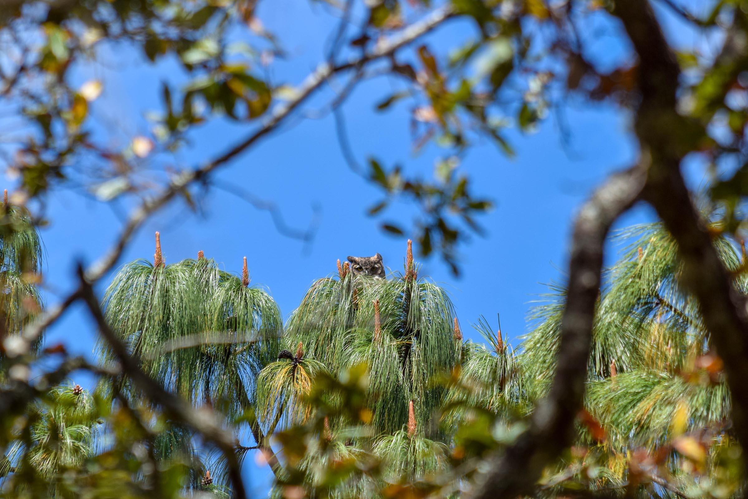 El Búho Cornudo (Bubo virginianus): De hábitos nocturnos y mirada penetrante, este majestuoso cazador nocturno es uno de los íconos del sendero. Su presencia es indicadora de un ecosistema sano y equilibrado.